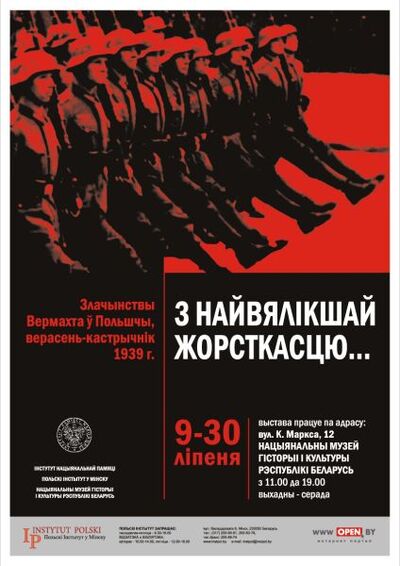 9 lipca 2008 roku w Mińsku na Białorusi w Narodowym Muzeum Historii i Kultury otwarta została wystawa „Z największą brutalnością – zbrodnie Wehrmachtu w Polsce, wrzesień–październik 1939”, przygotowana przez Biuro Edukacji Publicznej IPN i Niemiecki Instytut Historyczny w Warszawie. Prezentacja ekspozycji odbyła się dzięki inicjatywie i zaangażowaniu Narodowego Muzeum Historii i Kultury Białorusi, Instytutu Polskiego w Mińsku oraz Oddziałowego Biura Edukacji Publicznej IPN w Warszawie.