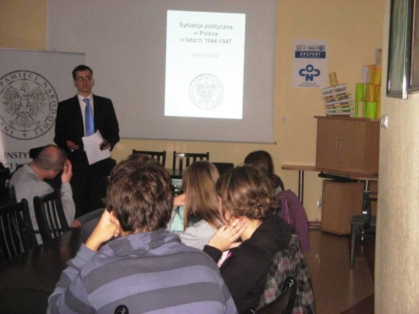 W dniach 4–6 listopada 2008 r. w LO nr 1 w Szczecinie, ZS w Deszcznie, a także ZS w Sławnie oraz Delegaturze IPN w Koszalinie odbyły się wykłady przeprowadzone przez Marcina Ozgę, pracownika Oddziałowego Biura Edukacji Publicznej IPN w Szczecinie. Tematem wykładów była sytuacja polityczna w Polsce w latach 1944–1947. Prelegent omówił m.in.powstanie Polskiego Komitetu Wyzwolenia Narodowego, Rządu Tymczasowego oraz Tymczasowego Rządu Jedności Narodowej. Dodatkowo została omówiona polska scena polityczna po 1945 r. wraz z najważniejszymi wydarzeniami tamtego okresu: referendum 30 czerwca 1946 r. i wyborami 19 stycznia 1947 r.