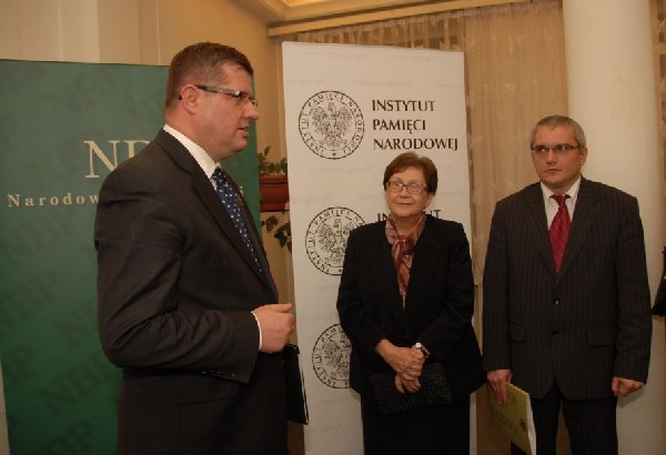 Spotkanie z mediami - od lewej: Józef Ruszar (NBP), S. Skrzypek, M. Dmochowska -
