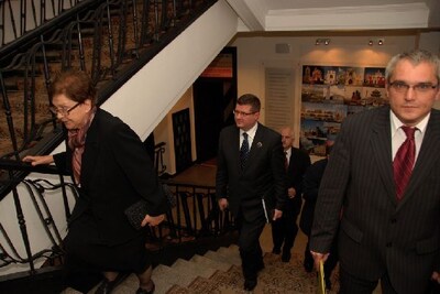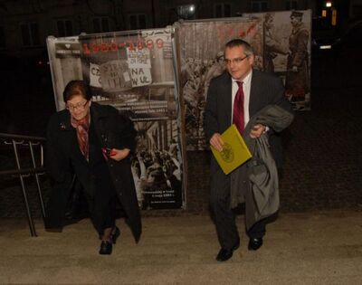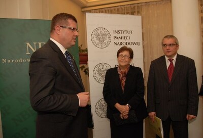Zastępca prezesa IPN dr Maria Dmochowska i dyrektor łódzkiego oddziału IPN Marek Drużka - w tle ekspozycja Sztafeta Niepodległości 1918-1989 -