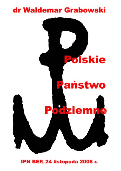 W poniedziałek 24 listopada 2008 roku w sali konferencyjnej BEP IPN w Warszawie, ul. Hrubieszowska 6A, w ramach cyklu spotkań „Poniedziałki z najnowszą historią Polski” dr Waldemar Grabowski wygłosił wykład „Polskie Państwo Podziemne”. Prelekcja była ilustrowana zdjęciami i dokumentami.