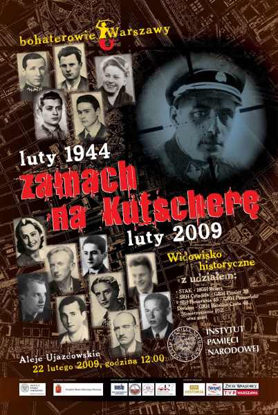 22 lutego 2009 roku o godzinie 12.00 w Alejach Ujazdowskich (między ul. Piękną i Al. Róż) w Warszawie odbyło się widowisko historyczne „Zamach na Kutscherę”. Imprezę zorganizował warszawski oddział Instytutu Pamięci Narodowej (w ramach cyklu „Bohaterowie Warszawy”) w związku z przypadającą w bieżącym roku (1 lutego) 65 rocznicą zamachu na generała Franza Kutscherę (dowódcy SS i Policji zwanego katem Warszawy). W widowisku udział wzięło Stowarzyszenia Tradycji Armii Krajowej w Warszawie, Harcerska Grupa Historyczna „Wigry”, Stowarzyszenie Historyczne „Cytadela”, GRH „Pionier 39”, Stowarzyszenie Inscenizacji Historycznych Pomerania 1945, GRH 130. Panzer–Lehr–Division, GRH Batalion Czata 49, Stowarzyszenie PSZ oraz goście.