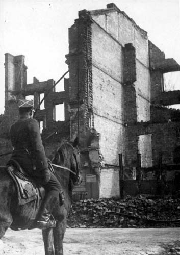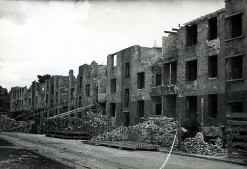 Ruiny Gdańska wiosną 1945 r. Największych zniszczeń wojska sowieckie dokonały już po pokonaniu Niemców. Grupy żołnierzy przez wiele dni wrzucały wiązki granatów do klatek schodowych, demolowały świątynie i inne obiekty w mieście. -