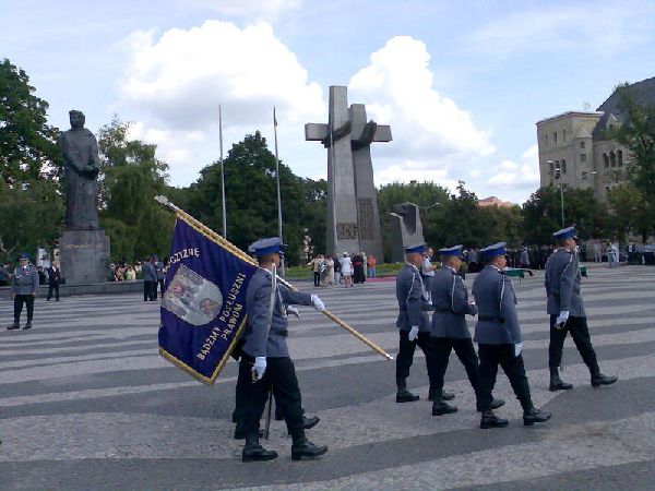 W tym roku minęła 90. rocznica powstania Policji. Na mocy uchwalonej przez Sejm RP ustawy 24 lipca 1919 r. powołano nową formację – Policję Państwową, w działaniu której priorytetem było zapewnienie bezpieczeństwa i porządku publicznego. Uroczystości rocznicowe miały również swój odświętny charakter w Wielkopolsce. 24 lipca bm. delegacje służb mundurowych, władz państwowych, samorządowych, zaproszeni goście, w tym delegacja Instytutu Pamięci Narodowej Oddział w Poznaniu, złożyli kwiaty w miejscach upamiętniających poległych i pomordowanych policjantów, m.in. pod Pomnikiem Ofiar Katynia i Sybiru. Główne obchody rocznicowe w Poznaniu odbyły się 29 lipca bm. Zapoczątkowała je msza święta w kościele pw. św. Jerzego, podczas której poświęcono sztandary Komendy Wojewódzkiej Policji w Poznaniu i Komendy Miejskiej Policji w Poznaniu. Centralne uroczystości odbyły się na placu Adama Mickiewicza. Udział w nich wzięli m.in. przedstawiciele władze państwowych, samorządowych, Komendant Główny Policji gen. insp. Andrzej Matejuk, kierownictwo wielkopolskiej policji oraz zaproszeni goście. Ceremonia rozpoczęła się od złożenia przez Policję kwiatów pod Pomnikiem Poznańskiego Czerwca 1956 roku. Następnie miało miejsce symboliczne pożegnanie sztandaru wielkopolskiej Policji i wręczenie nowych sztandarów dla Komendy Wojewódzkiej Policji w Poznaniu oraz Komendy Miejskiej Policji w Poznaniu. Policja otrzymała również dwa nowe samochody. Uroczystości na placu Adama Mickiewicza zakończyła defilada pododdziałów Policji. Następnie w auli Uniwersytetu im. Adama Mickiewicza odbyła się uroczysta akademia.