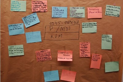 W części warsztatowej uczniowie przedstawili wydarzenia i cechy Polski oraz wschodnich Niemiec w okresie komunistycznym. Mówili o brakach żywności, represjach wobec opozycji. Niektórzy uczniowie z Niemiec podawali komunizm jako następstwo II wojny światowej, z kolei Polacy podkreślali wydarzenia z końcowego okresu PRL – Okrągły Stół, wybory 1989 r. i rząd Tadeusza Mazowieckiego.