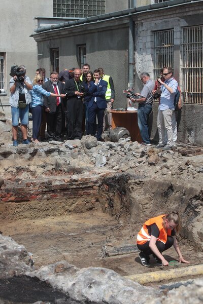 W pierwszych dniach prac odnaleziono tam m.in. pozostałości tzw. bykowca - ciężkiego bata. W czasach okupacji hitlerowskiej i w pierwszych latach po wojnie takie baty często były używane jako narzędzia tortur. Nie wiadomo na razie, jaka jest historia odnalezionego bykowca. Poza tym natrafiono na kostkę domino wykonaną ręcznie przez więźniów i pokrywę od kubła na nieczystości, który był standardowym wyposażeniem cel w tamtych czasach.