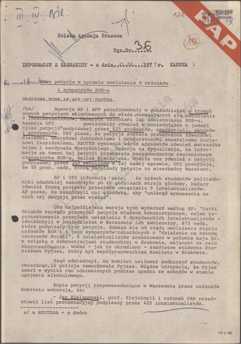 O wadze wystąpienia członków KOR opowiadają Zofia Romaszewska, która współtworzyła Biuro Interwencji Komitetu oraz prof. Jerzy Eisler z Instytutu Pamięci Narodowej. Zachęcamy do obejrzenia i wysłuchania ich wywiadów dla PAP!