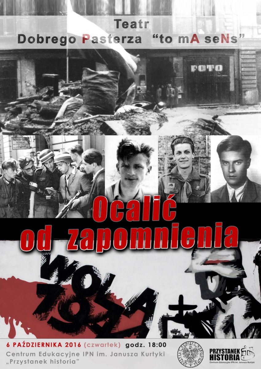 6 października 2016 r. w siedzibie Centrum Edukacyjnego IPN im. J. Kurtyki „Przystanek Historia” w Warszawie przy ul. Marszałkowskiej 21/25 grupa teatralna Teatr Dobrego Pasterza wystąpi w spektaklu słowno-muzycznym „Ocalić od zapomnienia…” w hołdzie Powstańcom Warszawskim z 1944 r.