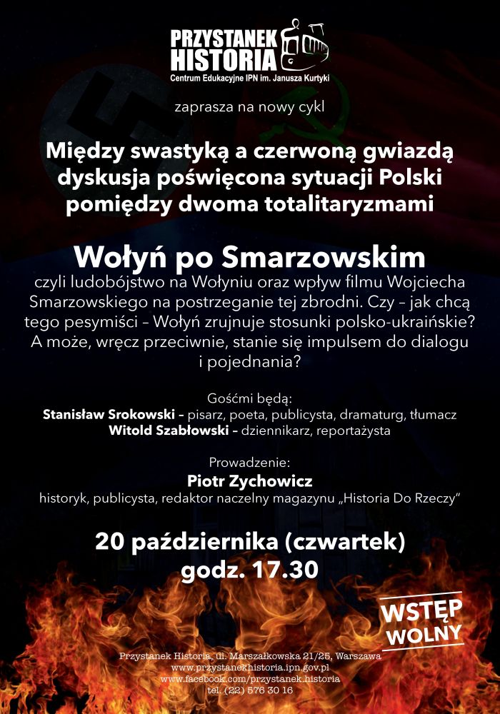 Zapraszamy na nowy cykl dyskusji o totalitaryzmie – „Między swastyką a czerwoną gwiazdą”. Pierwsze spotkanie, zatytułowane „Wołyń po Smarzowskim”, odbędzie się 20 października (czwartek), o godz. 17.30, w Centrum Edukacyjnym IPN Przystanek Historia, przy ul. Marszałkowskiej 21/25 w Warszawie.