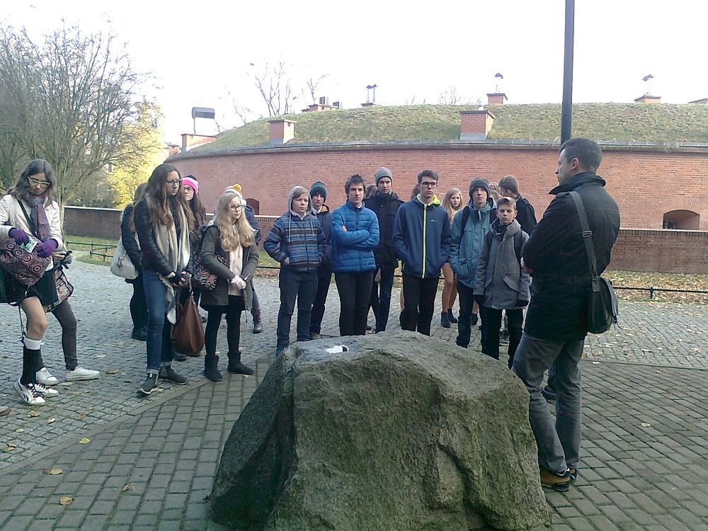 Pierwszy z nich „Śladami niepodległości po Żoliborzu” odbył się 10 listopada br. dzięki współpracy z „Czytelnią pod Sowami” (placówką Biblioteki Publicznej na Żoliborzu). Wzięli w nim udział uczniowie klasy 2a z Gimnazjum nr 56 im. Macieja Aleksego Dawidowskiego „Alka”.