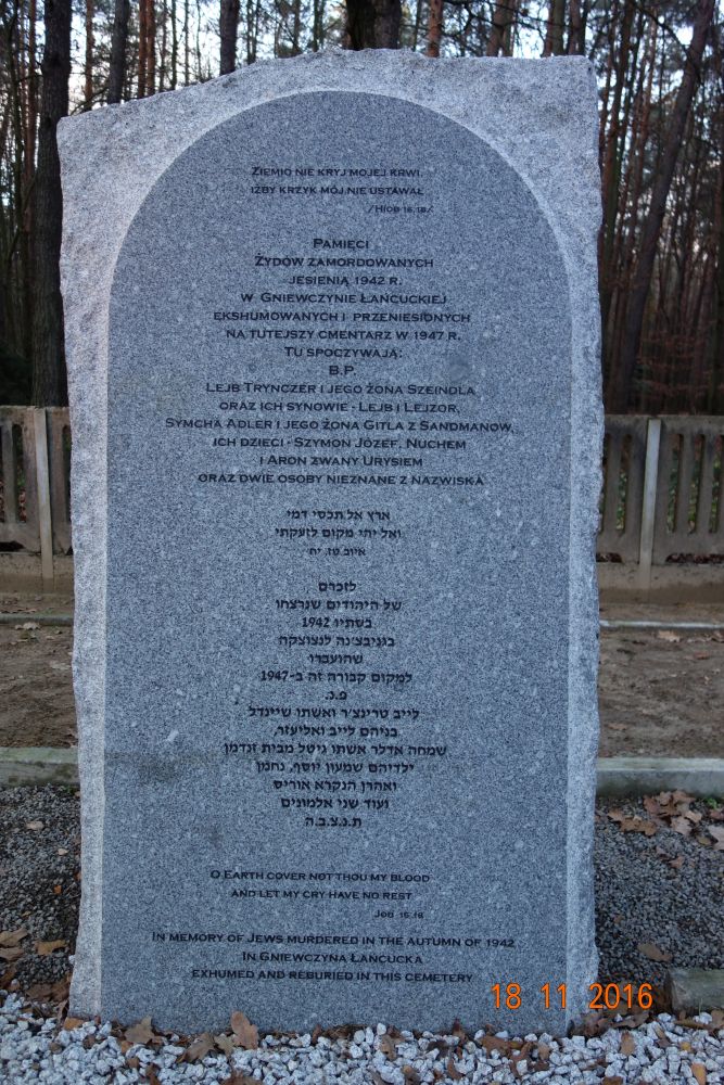 Zastępca Prezesa Instytutu Pamięci Narodowej dr Mateusz Szpytma złożył kwiaty na grobach Żydów zamordowanych w Gniewczynie Łańcuckiej i Kańczudze w latach 1942–45. Oficjalna uroczystość odsłonięcia obelisków poświęconych Żydom z tych miejscowości odbędzie się na cmentarzu wojennym w Jagielle-Niechciałkach koło Przeworska 20 listopada 2016.