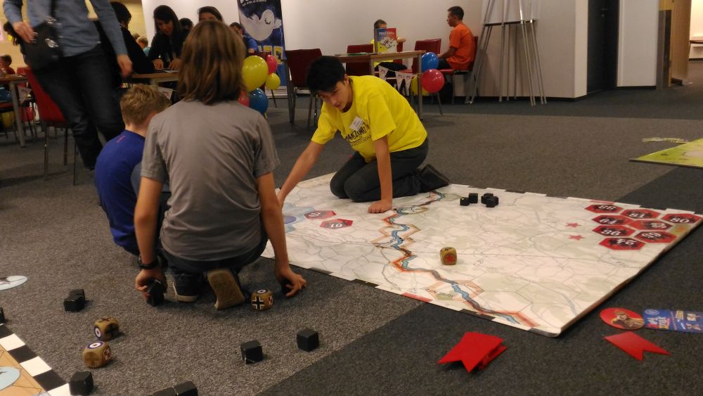 W sobotę 26 listopada odbyła się kolejna edycja warszawskiego festiwalu gier planszowych „Planszówki na Narodowym”. Jak co roku nie mogło na nim zabraknąć gier edukacyjnych IPN. Uwagę gości przyciągały nie tylko wielkoformatowe gry z trylogii lotniczej („303”, „111” i „7”), ale także, pokazywany publicznie po raz pierwszy, prototyp gry planszowej o misiu Wojtku. Wielu młodych graczy bardzo zaangażowało się w testowanie gry, a autor gry skrzętnie zapisywał wszelkie uwagi.