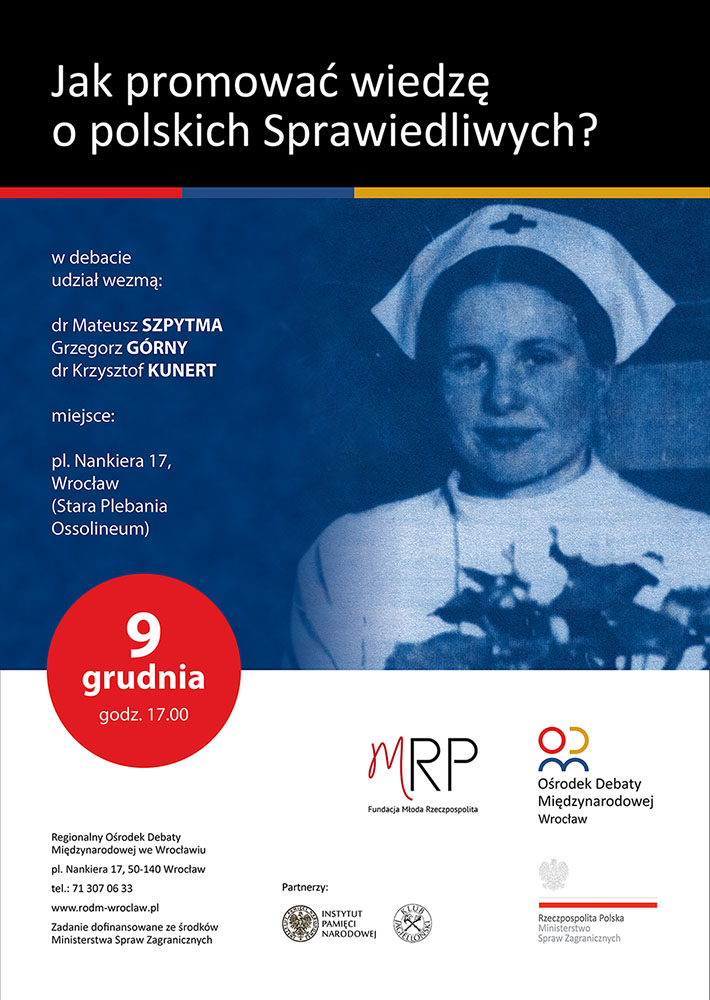 W debacie udział wezieli: dr Mateusz Szpytma – zastępca prezesa Instytutu Pamięci Narodowej, pomysłodawca i twórca Muzeum Polaków Ratujących Żydów podczas II Wojny Światowej im. Rodziny Ulmów w Markowej, autor licznych publikacji naukowych i popularnonaukowych; Grzegorz Górny – reporter, eseista, publicysta, reżyser, producent filmowy, założyciel kwartalnika „Fronda”, autor ponad 30 książek, w tym „Sprawiedliwi. Jak Polacy ratowali Żydów przed zagładą”. Moderatorem dyskusji był prof. dr hab. Krzysztof Kawalec – dyrektor Oddziału Instytutu Pamięci Narodowej we Wrocławiu, kierownik Zakładu Historii Polski i Powszechnej XIX i XX wieku w Instytucie Historycznym Uniwersytetu Wrocławskiego, autor licznych publikacji naukowych.