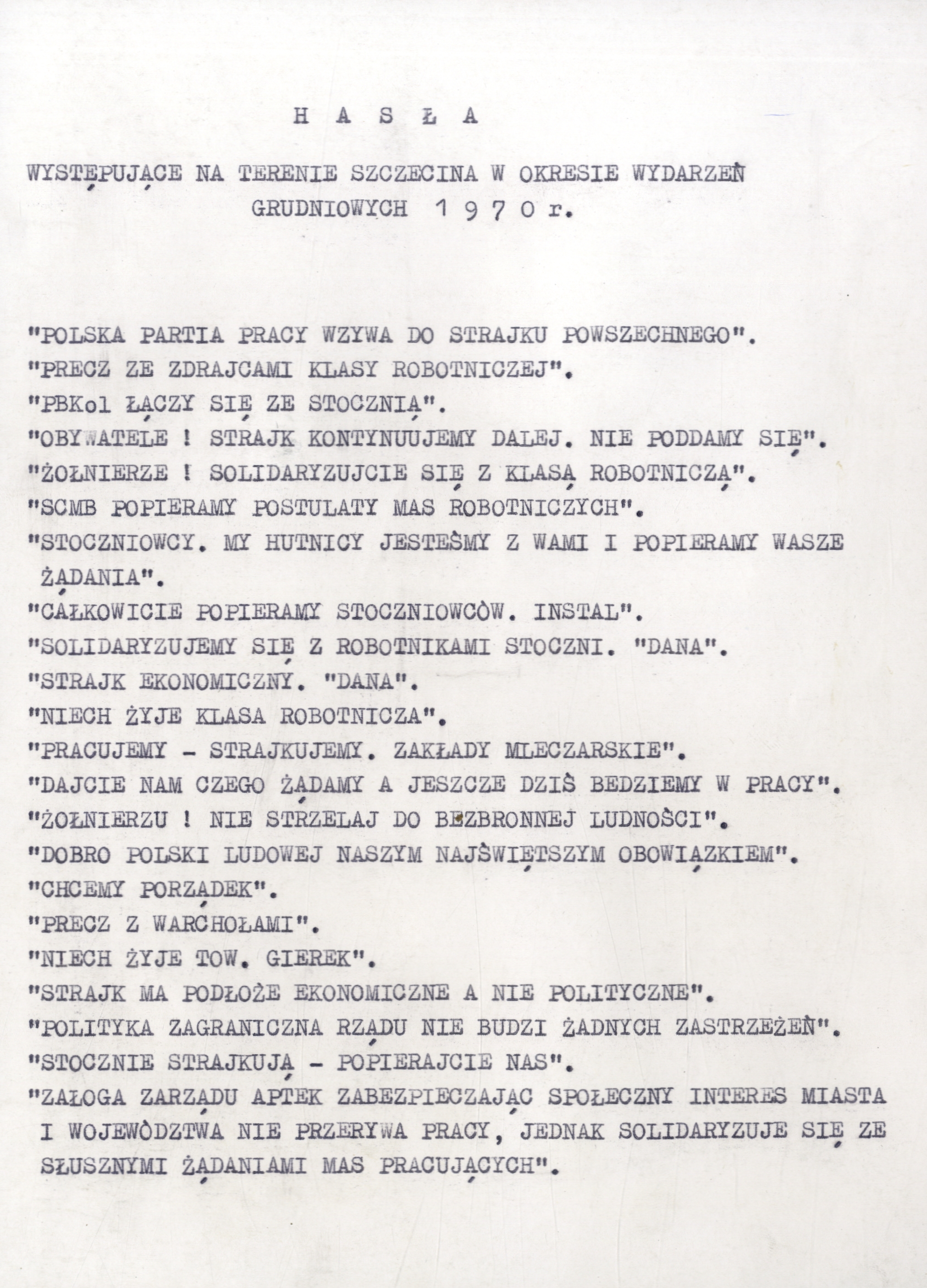 Koniec dekady lat 60. XX w. w Polsce upłynął pod znakiem coraz bardziej pogarszającej się sytuacji społeczno-gospodarczej. Lansowany przez komunistyczną propagandę obraz tzw. małej stabilizacji w czasie rządów Władysława Gomułki coraz bardziej odbiegał od rzeczywistości. Podwyżka cen wielu towarów, w tym produktów spożywczych, ogłoszona przez władze 12 grudnia 1970 r., stała się kroplą, która przelała czarę społecznej goryczy. Decyzja ta, wprowadzona w okresie świątecznych przygotowań, stała się bezpośrednią przyczyną wybuchu robotniczych protestów w kilku miastach Wybrzeża. Jako pierwsi wystąpili robotnicy Gdańska. 14 grudnia 1970 r. rozpoczął się strajk w Stoczni im. Lenina. W następnych dniach do protestów przyłączały się inne miasta: Słupsk, Elbląg, Gdynia.