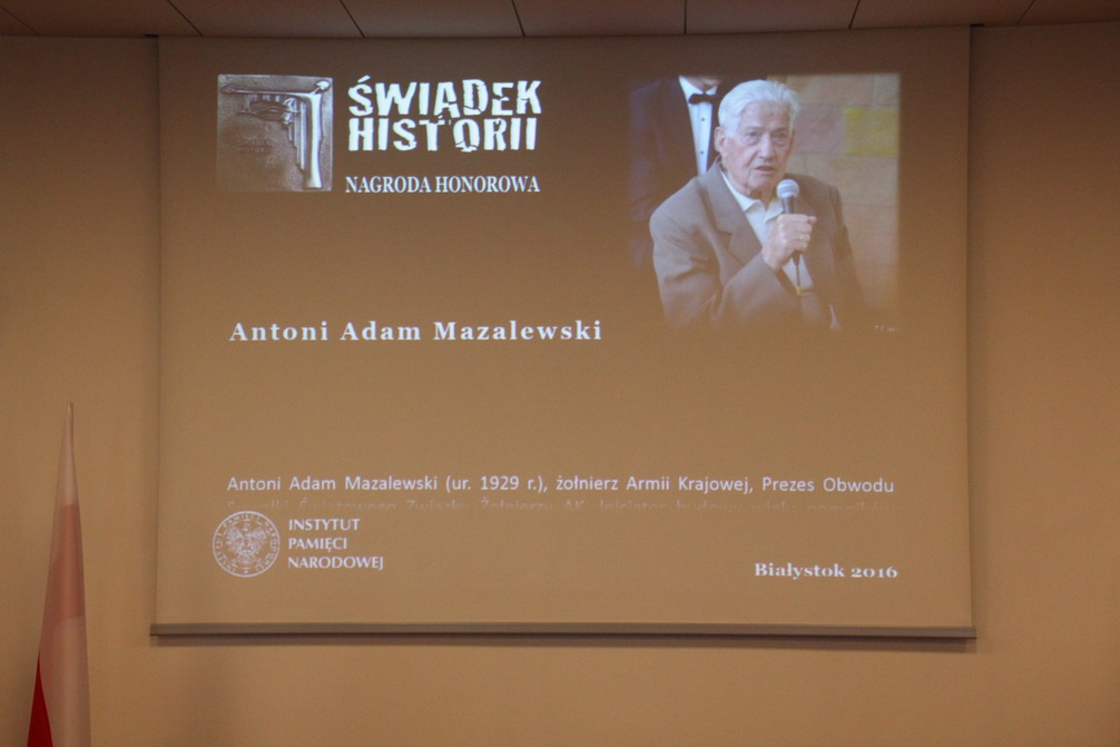 Honorowe odznaczenia wręczył dr Mariusz Żuławnik, zastępca dyrektora Archiwum IPN, który odczytał także list od Prezesa Instytutu Pamięci Narodowej dr. Jarosława Szarka. W swoim przesłaniu Prezes IPN napisał m.in.: „Wśród ponad sześćdziesięciu dotychczasowych Laureatów było wielu, których historia doświadczyła niezwykle boleśnie. Więźniowie sowieckich łagrów, ofiary stalinowskich katowni, Żołnierze Wyklęci czy działacze „Solidarności” - to na ich oczach działa się nasza XX–wieczna historia i to oni są jej częścią. Nie brakowało też młodszych, znających historię jedynie z lektur i opowieści, ale z pasją i determinacją dążących do jej utrwalania i upowszechniania. Również w tym roku Nagroda Honorowa „Świadek Historii” połączy różne pokolenia laureatów. Niezależnie jednak od metryki urodzin, są to osoby wyjątkowe. Kształtują nowe pokolenia Polaków, są inspiracją i wzorem dla młodzieży, nie boją się głośno mówić prawdy o skomplikowanej i nieraz niewygodnej dla wielu lokalnej historii. Dzisiaj często spotykamy się ze zjawiskiem opluwania własnego gniazda - pisał Prymas Wyszyński. - Ludzie, zwłaszcza niezbyt wykształceni, natrząsają się z naszej przeszłości historycznej, nie doceniają wielkiej ofiary, każdej kropli krwi wylanej za Naród czy każdej kropli potu z czoła rolnika, która wsiąkła w ziemię ojczystą. To wszystko wskazuje na wielką potrzebę wołania o szacunek dla dziejów narodowych, dla trudów pokoleń, które minęły, dla ich ofiarnej krwi wylanej w powstaniach, w walce o wolność Ojczyzny. To właśnie wołanie o szacunek dla własnej historii jest Państwa największą zasługą. Niech to honorowe wyróżnienie będzie wyrazem naszej wdzięczności i szacunku dla Państwa wielkiej pracy”.
