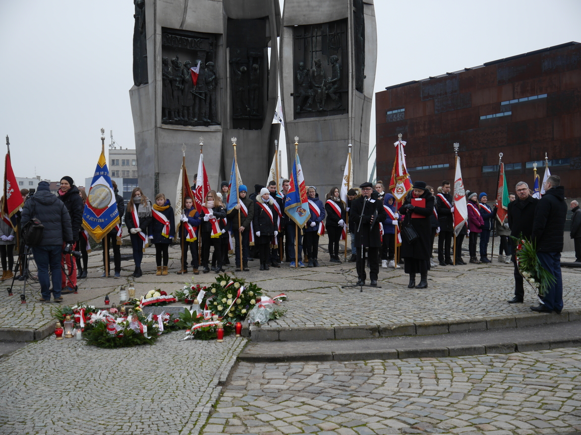 Uroczystości rozpoczęły się w Gdańsku na Placu Solidarności. Pod pomnikiem Poległych Stoczniowców zebrało się kilkaset osób, w tym delegacje szkół i pracowników Stoczni Gdańskiej. Wśród gości wydarzenia obecni byli przedstawiciele parlamentu (m. in. europosłanka Anna Fotyga), zarząd Stoczni Gdańskiej i wielu innych gdańskich instytucji. Instytut Pamięci Narodowej reprezentował dr Karol Nawrocki, naczelnik Oddziałowego Biura Edukacji Narodowej.