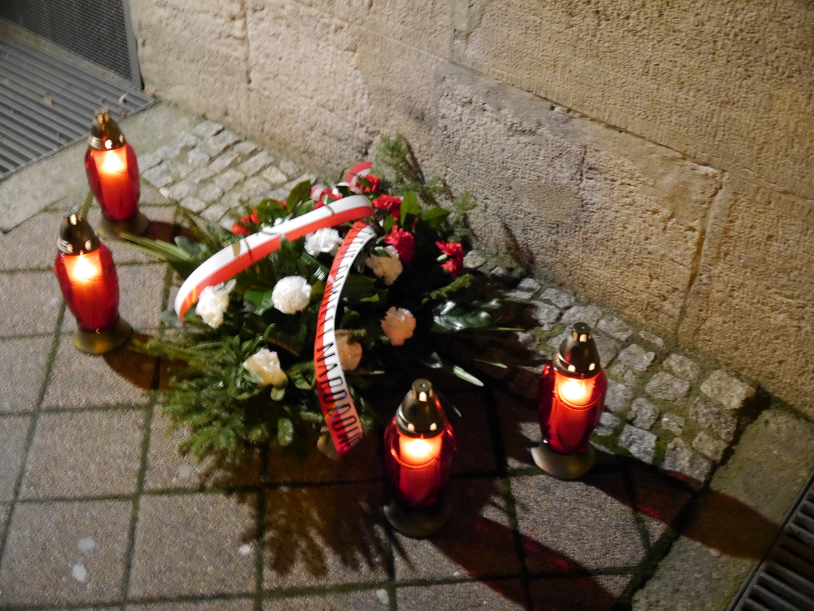 Popołudniową i wieczorną część uroczystości w Gdańsku z okazji 46. rocznicy Grudnia '70 rozpoczęło zapalenie zniczy pod tablicą upamiętniającą Ofiary Grudnia '70, znajdującą się na ścianie budynku byłego Komitetu Wojewódzkiego PZPR w Gdańsku, podpalonego wówczas przez demonstrujących. W imieniu Oddziału IPN w Gdańsku pomordowanych upamiętnili prof. Mirosław Golon (dyrektor Oddziału IPN w Gdańsku) i dr Karol Nawrocki.