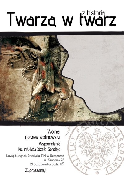 Instytut Pamięci Narodowej Oddział w Rzeszowie przygotował kolejne spotkanie z cyklu „Twarzą w twarz z historią”, które odbyło się 21 października 2009 r. w budynku rzeszowskiego oddziału IPN, przy ul. Szopena 23. Celem cyklu „Twarzą w twarz z historią” jest przybliżanie uczestnikom spotkań historii Polski z perspektywy jej obywateli i ich osobistych przeżyć. Gościem spotkania był ks. infułat Józef Sondej.
