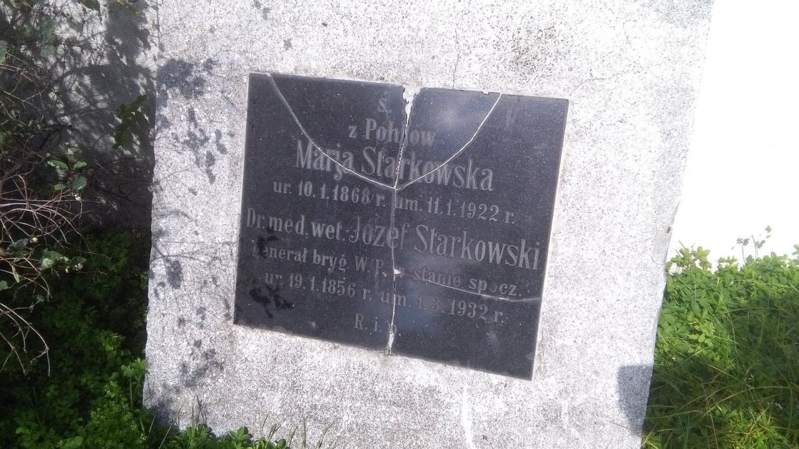 Gen. Józef Starkowski zmarł w 1932 r. i został pochowany wraz ze zmarłą w 1922 r. żoną Marią z Pohlów.
