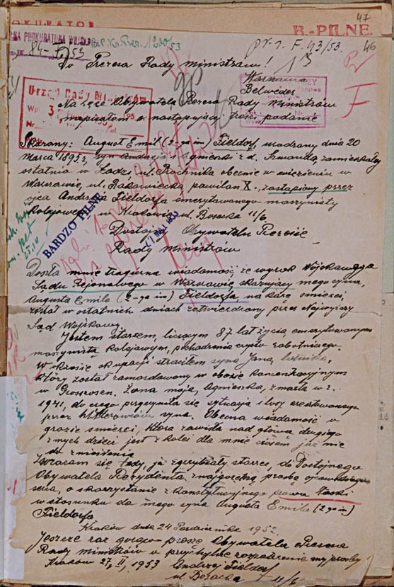 fot. 2. List ojca generała Fieldorfa z prośbą o akt łaski dla skazanego syna.