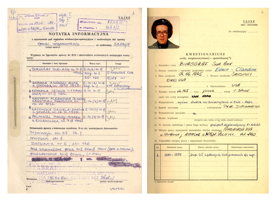 – Widziałem może promil tego zbioru – powiedział obecny na konferencji Sławomir Cenckiewicz, członek Kolegium IPN. I zaprezentował dziennikarzom przykład odtajnionych materiałów – dokumenty dotyczące Sue Burggraf, oficer CIA pracującej w Warszawie, która była nad Wisłą de facto oficerem prowadzącym płk. Ryszarda Kuklińskiego.