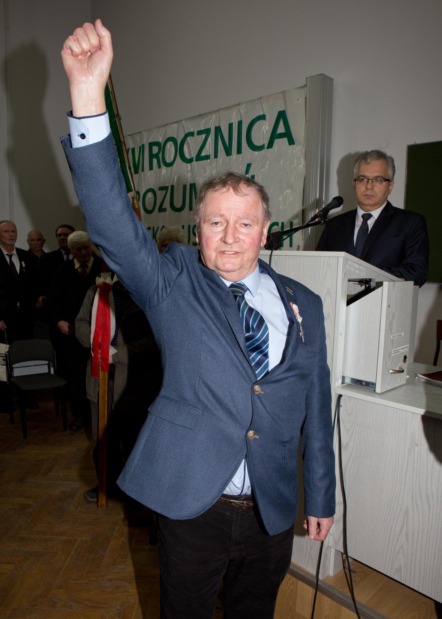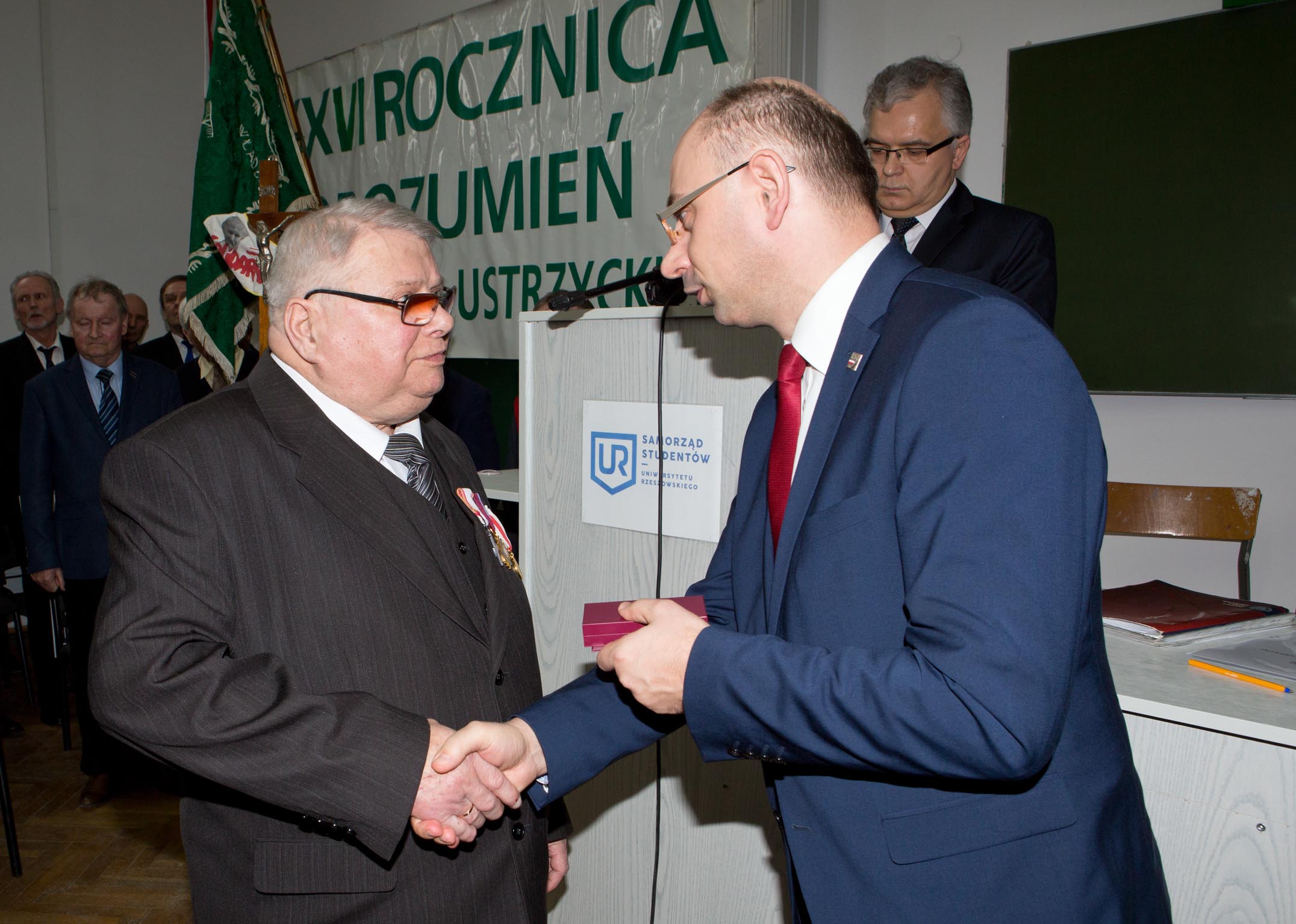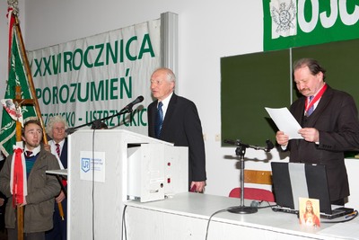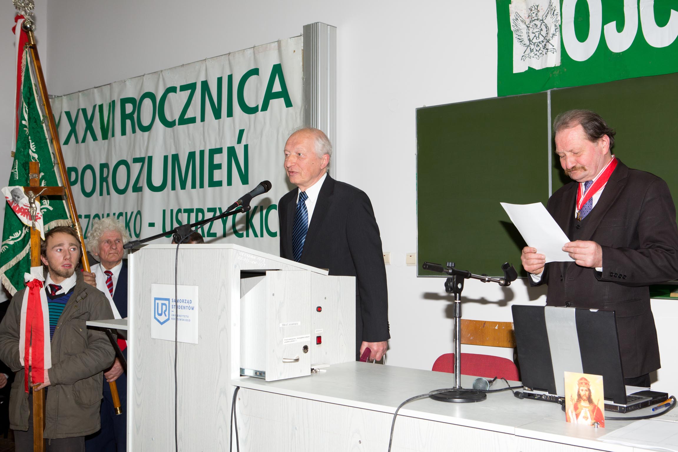 – Jesteście Państwo tą grupą, z którą jestem szczególnie związany przez mojego śp. ojca Stanisława Szpytmę, którzy w styczniu 1981 r. jedyny raz w życiu zaangażował się publicznie i brał udział w strajku, a ja jako dziecko martwiłem się o to, czy tata wróci do domu. Jestem historykiem, który interesuje się solidarnością wiejską, wśród osób odznaczonych i znajdujących się na sali są tacy, którzy pojawiają się w moich artykułach, m.in. Katarzyna Bielańska, Józefa Tylek, Bronisław Łuczywo, Wieńczysław Nowacki, mam nadzieję, że w przyszłości uda się jeszcze napisać we współpracy z państwem pracę na ten temat – powiedział podczas swojego wystąpienia wiceprezes IPN dr Mateusz Szpytma. Zapewniał, że „w żadnej części Polski nie odbyło się tyle konferencji, prelekcji, wystaw i nie ukazało się tyle artykułów na temat solidarności wiejskiej, co w Rzeszowie”.