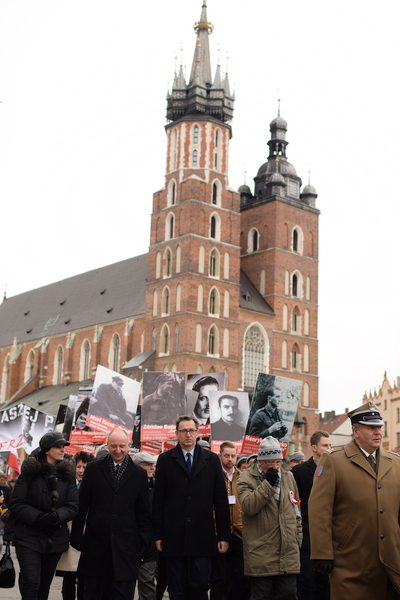 W uroczystościach brali udział m.in. wicemarszałek Sejmu Ryszard Terlecki i prezes IPN Jarosław Szarek. Po mszy św. uczestnicy obchodów wyruszyli do parku im. H. Jordana, a poprowadziły ich Krakowski Szwadron Ułanów im. J. Piłsudskiego, Pułk 4. Ułanów Zaniemeńskich Kawalerii Ochotniczej, Kompania Honorowa WP i Orkiestra Wojskowa. W parku odbył się Apel Pamięci oraz oddano salwę honorową przy popiersiach żołnierzy wyklętych, m.in. Danuty Siedzikówny „Inki”, ks. Władysława Gurgacza i rtm. Witolda Pileckiego.