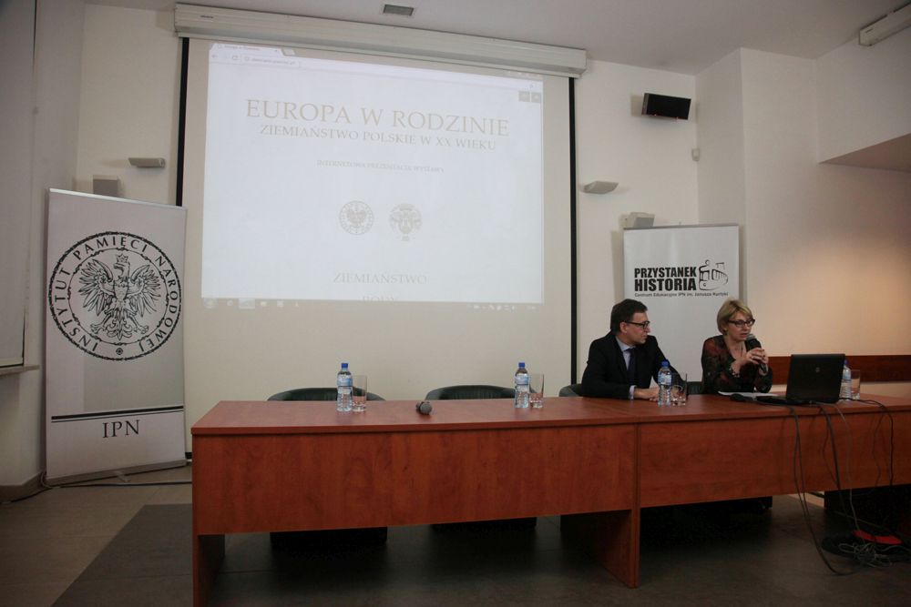 Spotkanie otworzył dr Jarosław Szarek, Prezes Instytutu Pamięci Narodowej. W swoim wystąpieniu przypomniał, że w tym roku minie setna rocznica rewolucji bolszewickiej w Rosji, która stała się początkiem dramatycznych przemian politycznych, społecznych, gospodarczych i kulturowych. Stała się także początkiem zagłady ziemiaństwa i niszczenia konserwatywnych wartości. Następnie kurator wystawy „Europa w rodzinie. Ziemiaństwo polskie w XX wieku” dr Agnieszka Łuczak zaprezentowała internetową wersję wystawy na nowym portalu IPN ziemianie.pamiec.pl.