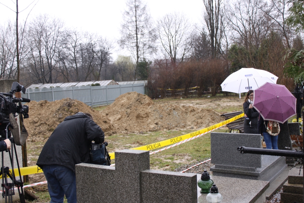 W godzinach porannych odbył się na cmentarzu briefing dla mediów z udziałem prokuratora Marka Kowalcze z OKŚZpNP IPN w Krakowie oraz Marcina Kasprzyckiego z BBH IPN w Krakowie.