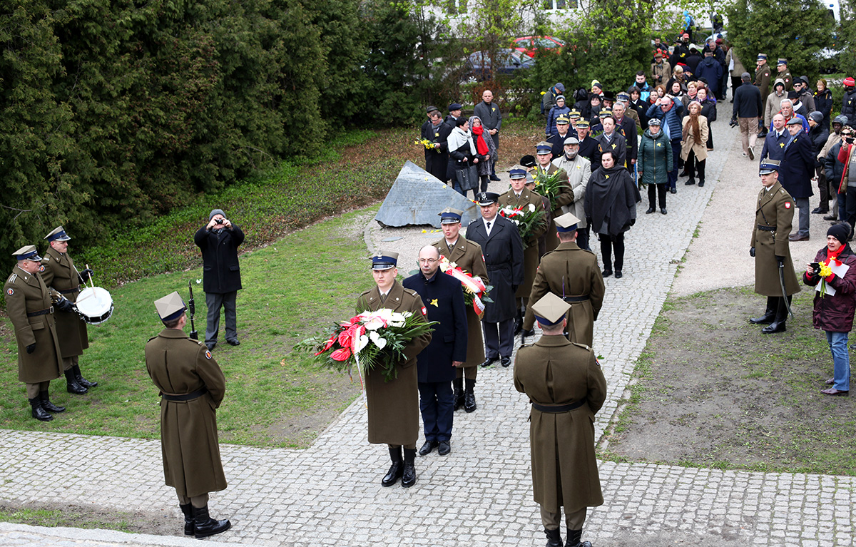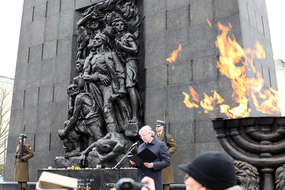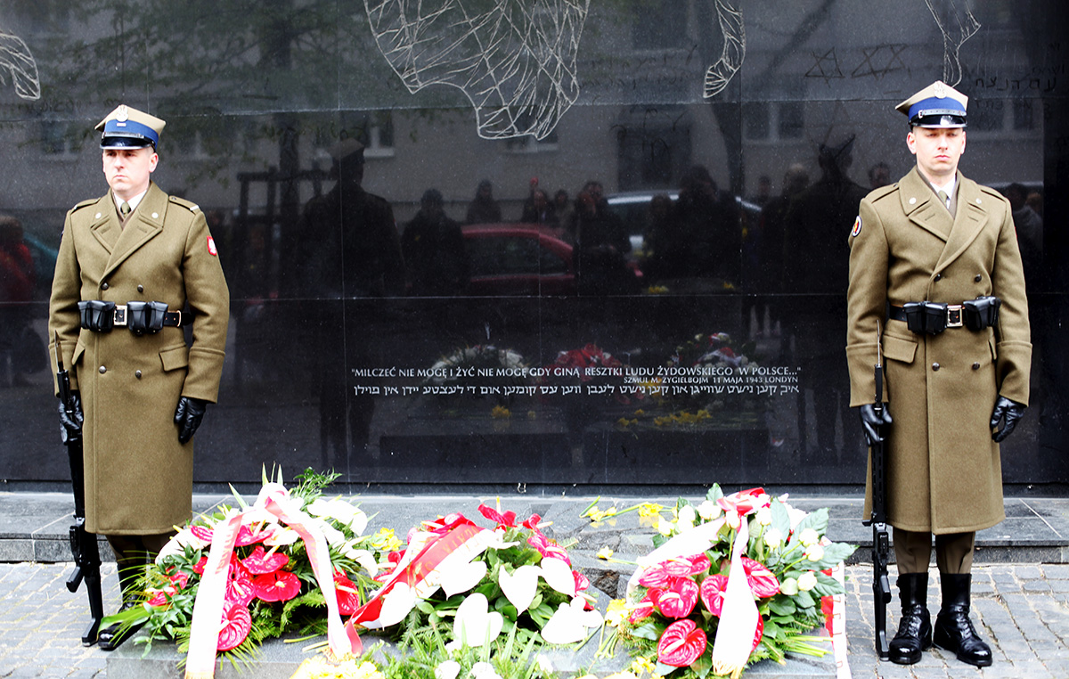 Wiceprezes IPN dr Mateusz Szpytma, wraz z innymi delegacjami, złożył też wieńce przed pomnikiem Szmula Zygielbojma, przy Bunkrze Anielewicza i na Umschlagplatz.