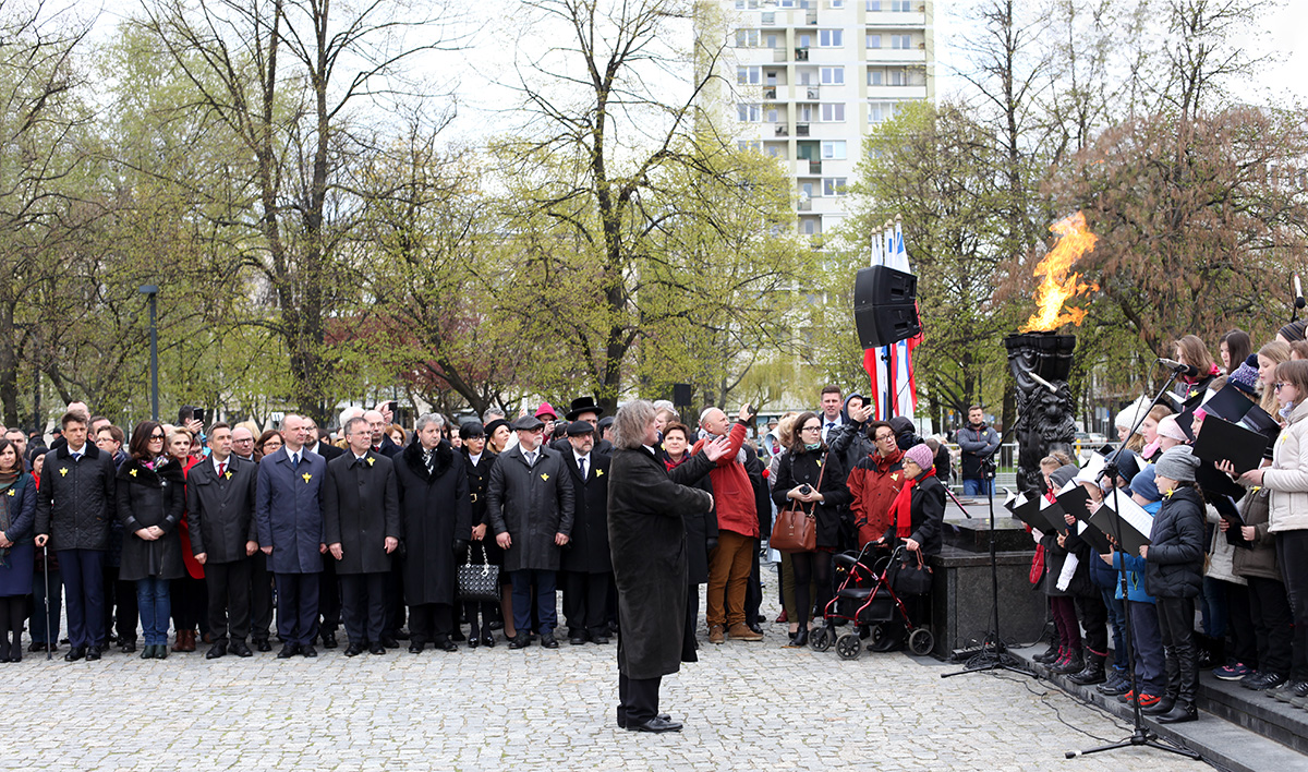 Zanim delegacje złożyły wieńce, dla zgromadzonych na placu przed Muzeum POLIN zaśpiewał chór dziecięcy miasta Łodzi, który wykonał hymn bojowników getta warszawskiego.