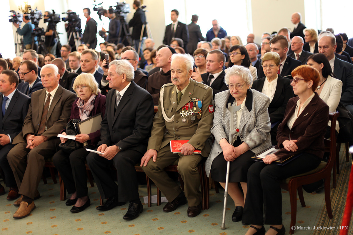 – Oddając honor bestialsko zamordowanym 70 lat temu bohaterom walki o wolną ojczyznę i chyląc przed nimi głowę, państwo polskie przywraca godność sobie – mówił prezydent Andrzej Duda podczas uroczystości wręczenia not identyfikacyjnych członkom rodzin 12 ofiar totalitaryzmów w Pałacu Prezydenckim.