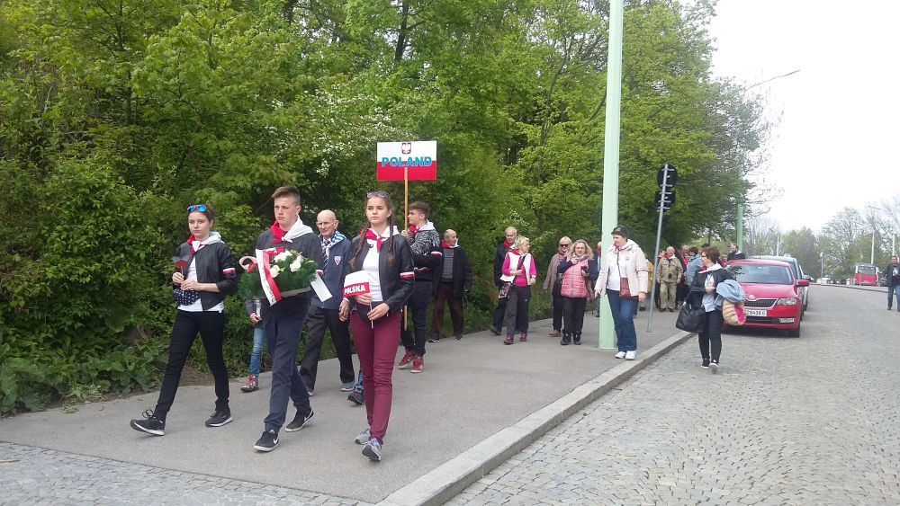 O godzinie 17.00 uczestniczyli w międzynarodowych uroczystościach rocznicowych przy memoriale KL Gusen oraz obejrzeli wystawę „Granit i śmierć, pamięć i zapomnienie” w byłych barakach SS w Gusen.