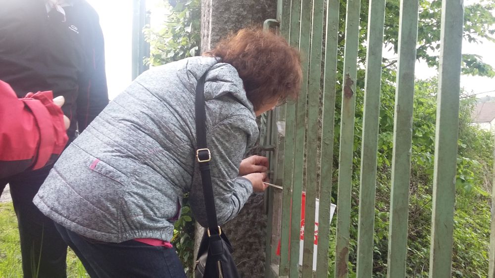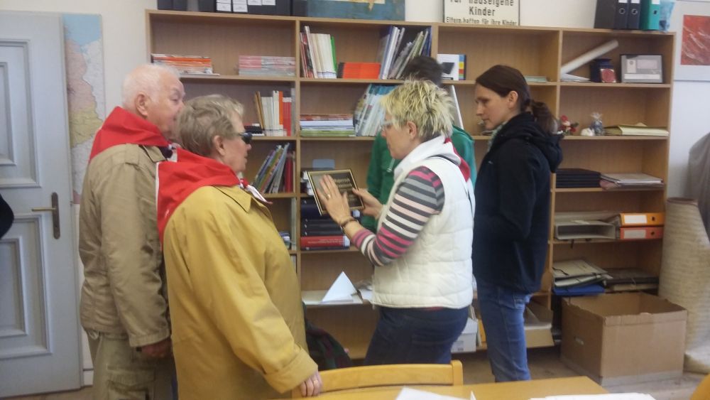 Przekazanie tabliczki rodziny zamordowanego w Hartheim do umieszczenia obok tabliczek zamordowanych więźniów -