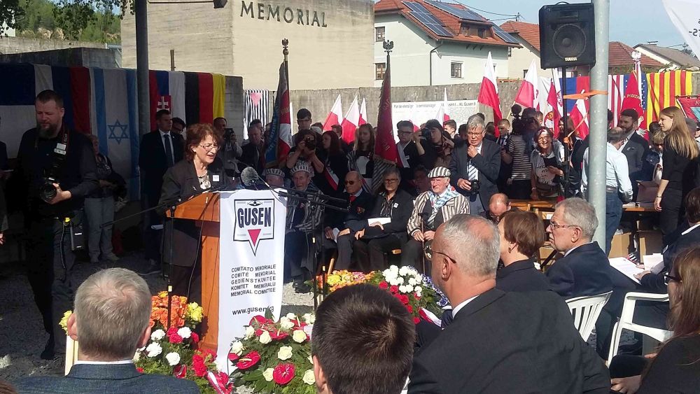Uroczystości przy Memoriale KL Gusen – wystąpienie Marthy Gammer, założycielki Komitetu Memoriału Gusen -