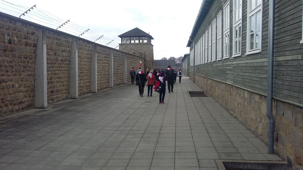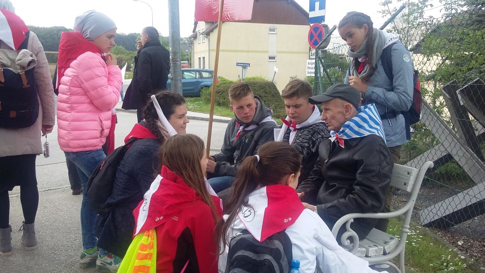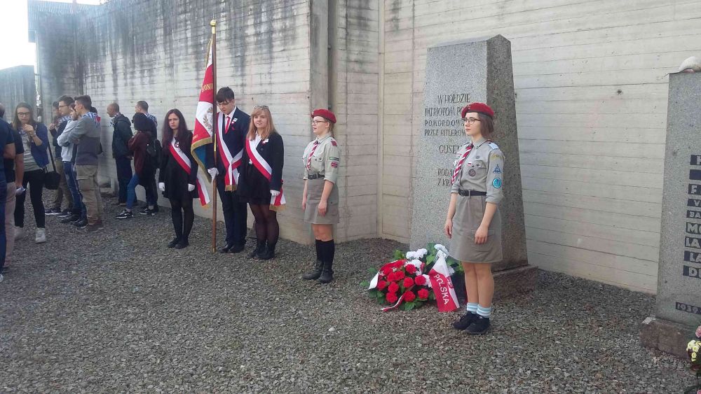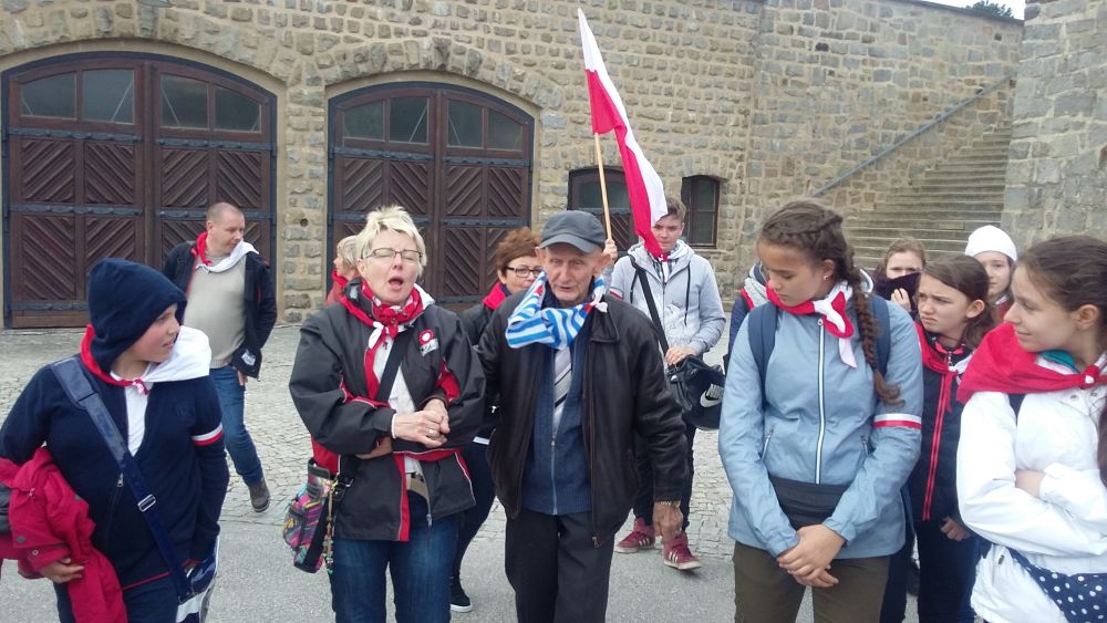 Po zakończeniu uroczystości zwiedzili dawny obóz koncentracyjny Mauthausen, a Pan Wiesław Krawczykowski wspominał transport powstańców warszawskich do tego obozu, jesienią 1944 roku. Uczestnicy przeszli po 186 „schodach śmierci”, po których więźniowie codziennie wielokrotnie nosili ciężkie, granitowe bloki kamienne, wykorzystywane m.in. do budowy austriackich dróg i mostów. Ze schodów tych więźniowie, popychani przez niemieckich wachmanów, często spadali do położonego u stóp schodów jeziora i ginęli. W żargonie więźniów byli oni nazywani „spadochroniarzami”. Tysiące ofiar upamiętnia Tablica Spadochroniarzy, pod którą młodzież zapaliła znicze pamięci.
