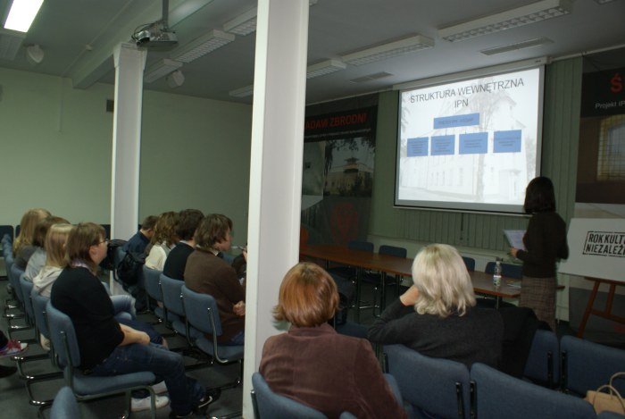 W dniu 7 grudnia br. w ramach spotkań cyklicznych z uczniami na temat „Życia codziennego w PRL” o godz. 13.30 w sali konferencyjnej poznańskiego oddziału Instytutu Pamięci Narodowej przy ul. Rolnej 45a młodzież z Gimnazjum nr 1 w Obornikach zapoznała się z historią życia codziennego epoki PRL-u. Prezentacji multimedialnej towarzyszyły pokazy kronik filmowych i archiwalnych nagrań. Spotkanie poprowadziła Katarzyna Florczyk z Referatu Edukacji Historycznej IPN.