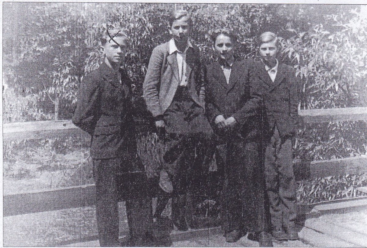 Uczniowie klasy II b Państwowego Gimnazjum i Liceum Ogólnokształcącego w Rudniku, założyciele tajnej młodzieżowej organizacji „Orlęta”: od lewej – Stanisław Mandecki (ur. 1929), Lesław Popowicz (ur. 1930), Władysław Konefał (ur. 1930), Henryk Igras, agent UB „Walter” (ur. 1930); Rudnik nad Sanem, 1946 roku -