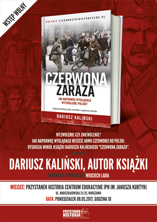 Przystanek Historia – Centrum Edukacyjne IPN im. Janusza Kurtyki oraz Wydawnictwo Znak zapraszają na spotkanie wokół książki Dariusza Kalińskiego Czerwona zaraza. Jak naprawdę wyglądało wyzwolenie Polski? Rozmowę z autorem poprowadzi dziennikarz Wojciech Lada. Spotkanie odbędzie się 8 maja (poniedziałek) o godz. 18.00 w Centrum Edukacyjnym IPN przy ul. Marszałkowskiej 21/25 w Warszawie.
