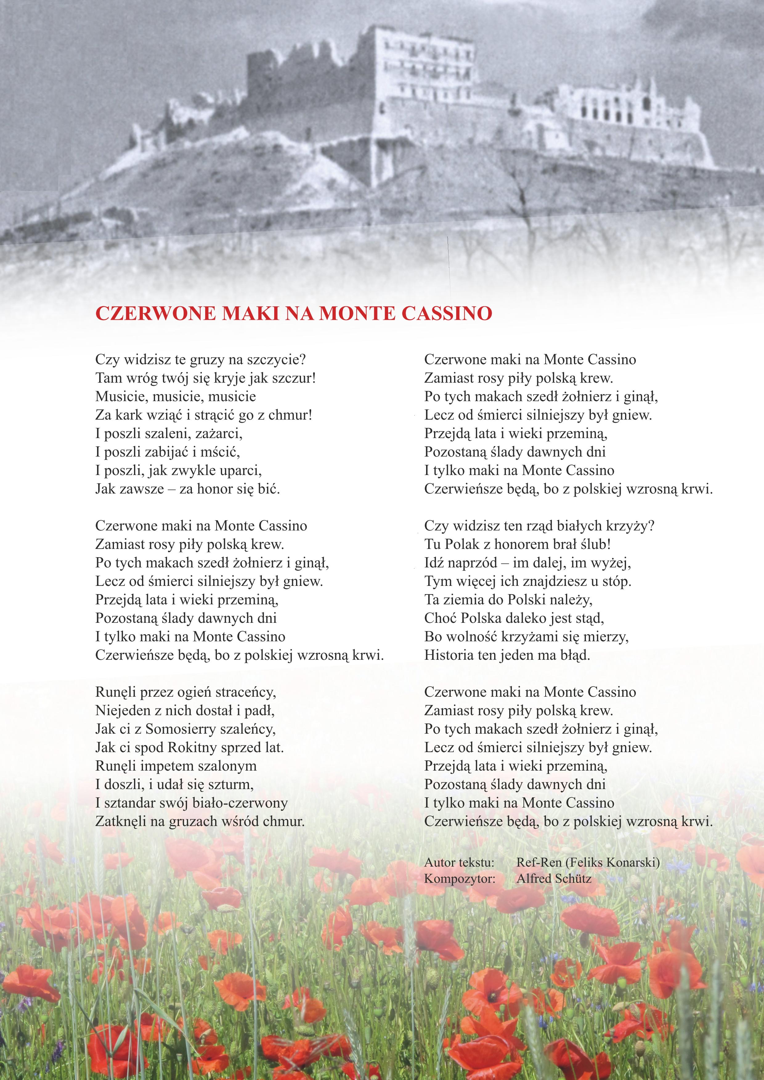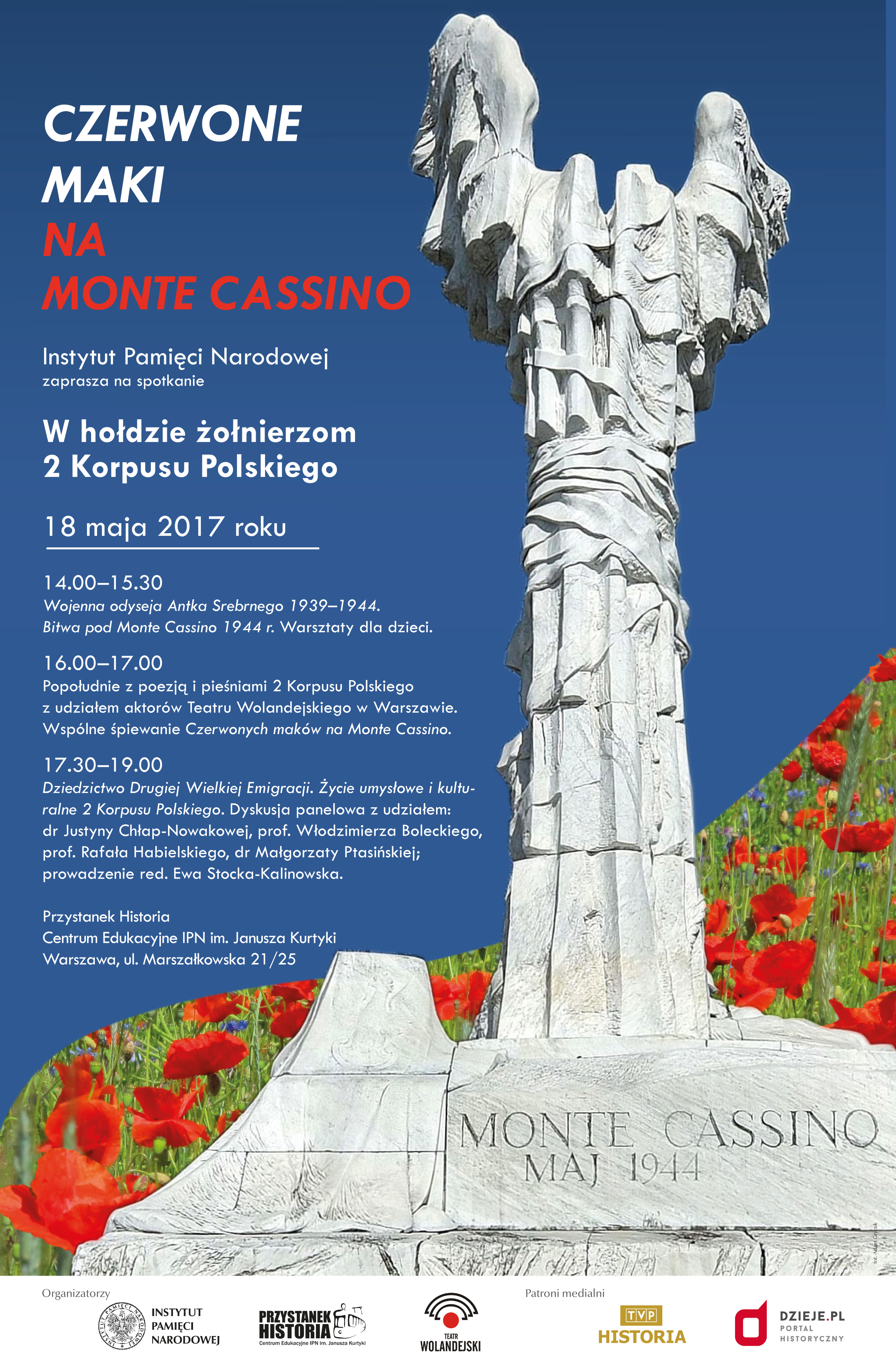 W czwartek, 18 maja br. w stołecznym Przystanku Historia, w związku z 73. rocznicą zakończenia bitwy pod Monte Cassino Instytut Pamięci Narodowej zorganizował spotkanie „W hołdzie żołnierzom 2 Korpusu Polskiego”. Głównym punktem wydarzenia było wspólne śpiewanie „Czerwonych maków na Monte Cassino”. Pieśń zaśpiewali dorośli i dzieci, zarówno amatorzy, jak i profesjonaliści, nauczyciele, profesorowie i uczniowie. Warto tu wyróżnić aktorów Teatru Wolandejskiego w Warszawie oraz chór dziecięcy ze szkoły podstawowej nr 336 im. Janka Bytnara „Rudego” w Warszawie, a także dyrektora warszawskiego Oddziału IPN w Warszawie prof. Jerzego Eislera. Wspólne wykonanie „Maków” dostarczyło wielu emocji i wzruszeń.