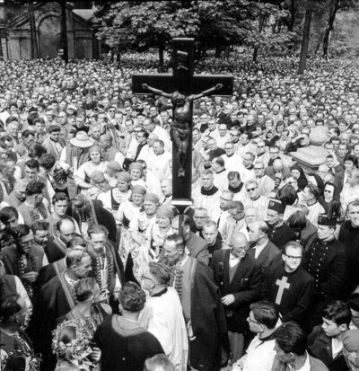 Społeczny wymiar pielgrzymek nabrał szczególnego znaczenia w PRL, w czasie walki władz komunistycznych z religią i Kościołem. Pielgrzymi płacili za to wysoką cenę. W drodze do sanktuarium byli obserwowani i fotografowani przez funkcjonariuszy aparatu bezpieczeństwa, a później na tej podstawie szykanowani w miejscu pracy lub karani przez kolegia. Za inwigilację przygotowań i przebiegu pielgrzymek bezpośrednio odpowiadały wojewódzka jednostka SB w Katowicach oraz SB w Tarnowskich Górach.