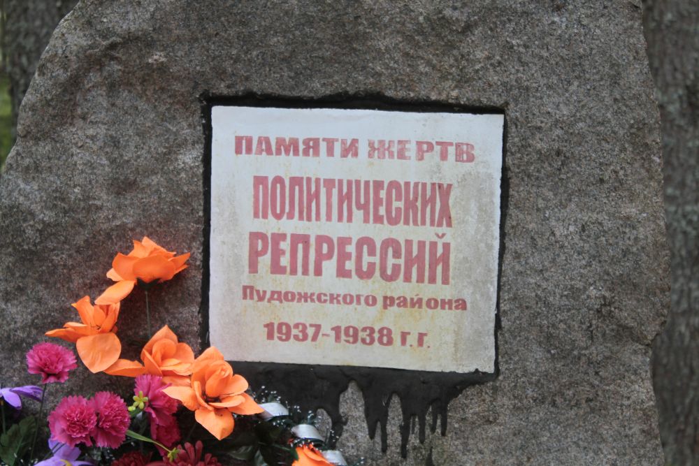 Kilka kilometrów od tej miejscowości, w lesie koło wsi Czornaja Rieczka znajduje się odnaleziony w końcu lat 90. zbiorowy grób około 800 więźniów politycznych, rozstrzelanych w latach 1937–38. W Pudoży i jej okolicach przebywało wielu zesłańców z okresu po powstaniu styczniowym. Także w okresie międzywojennym byli tutaj zesłani tzw. specposieleńcy (osiedleńcy specjalni) polskiego pochodzenia. Znajdujący się w lesie prawosławny krzyż upamiętnia więźniów rozstrzelanych w okresie Wielkiego Terroru lat 1937–38, wśród których z pewnością byli Polacy i osoby polskiego pochodzenia, o czym jest przekonany dyrektor Muzeum Krajoznawczego w Miedwieżjegorsku Siergiej Kołtyrin. Niezbędna jest weryfikacja list zamordowanych i upamiętnienie tutejszych Polaków, o czym zapewnia konsul Andrzej Chodkiewicz. Polska delegacja jako pierwsza odwiedziła to miejsce na mapie sowieckiego terroru lat 30.