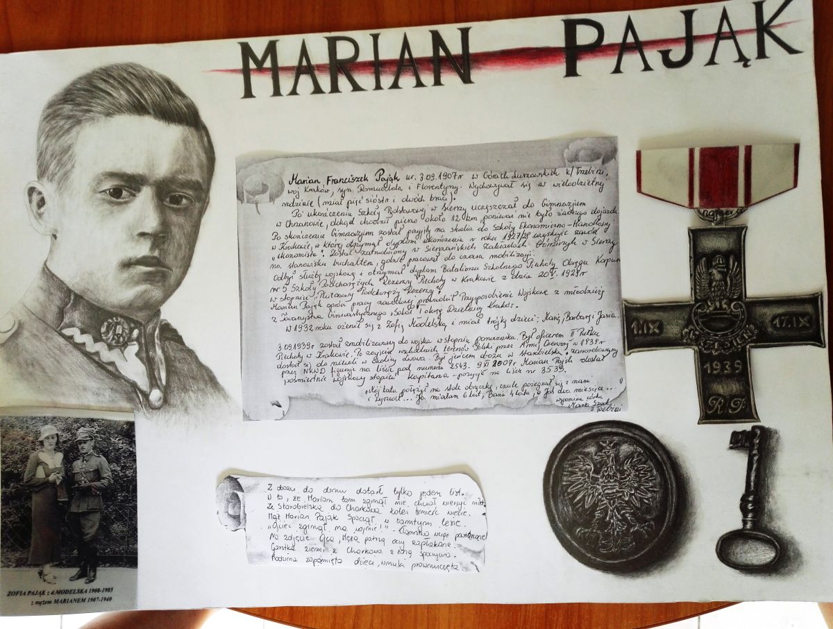 Bohater: Marian Pająk – praca w wykonaniu Piotra Patera i Andżeliki Porczak pod opieką Renaty Kosowskiej-Waleń z Zespołu Szkół Techniczno-Usługowych w Trzebini