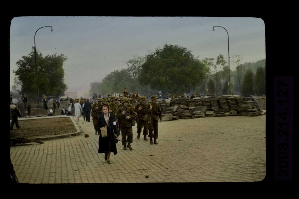 Barykada na ulicy Nowogrodzkiej, u zbiegu z Marszałkowską. (AIPN/Kolekcja Juliena Bryana w Warszawie. AIPN/Julien Bryan Collection in Warsaw) -
