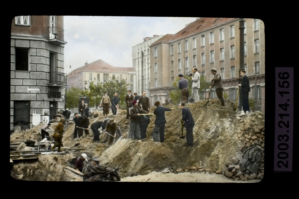 Rowy przeciwlotnicze na placu Narutowicza we wrześniu 1939 roku. (AIPN/Kolekcja Juliena Bryana w Warszawie. AIPN/Julien Bryan Collection in Warsaw) -