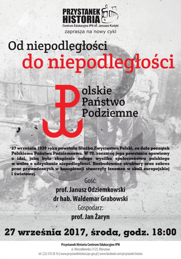 W Centrum Edukacyjnym IPN „Przystanek Historia” odbyło się pierwsze spotkanie z nowego cyklu „Od niepodległości do niepodległości – profesor Jan Żaryn zaprasza”. O fenomenie Polskiego Państwa Podziemnego rozmawiali prof. Janusz Odziemkowski i dr hab. Waldemar Grabowski, a spotkanie poprowadził gospodarz cyklu prof. Jan Żaryn.