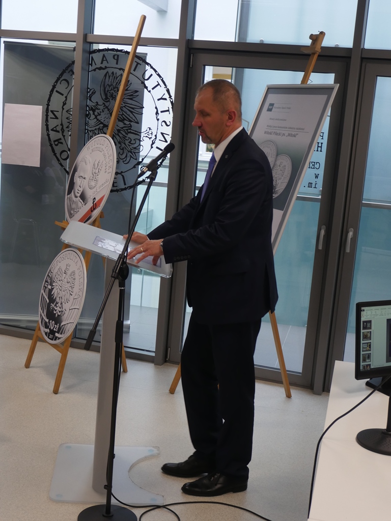 W drugiej części spotkania odbyła się prezentacja okolicznościowej monety kolekcjonerskiej z wizerunkiem Witolda Pileckiego, której dokonał Mariusz Siembiga – zastępca dyrektora Narodowego Banku Polskiego – Oddziału Okręgowego w Katowicach.