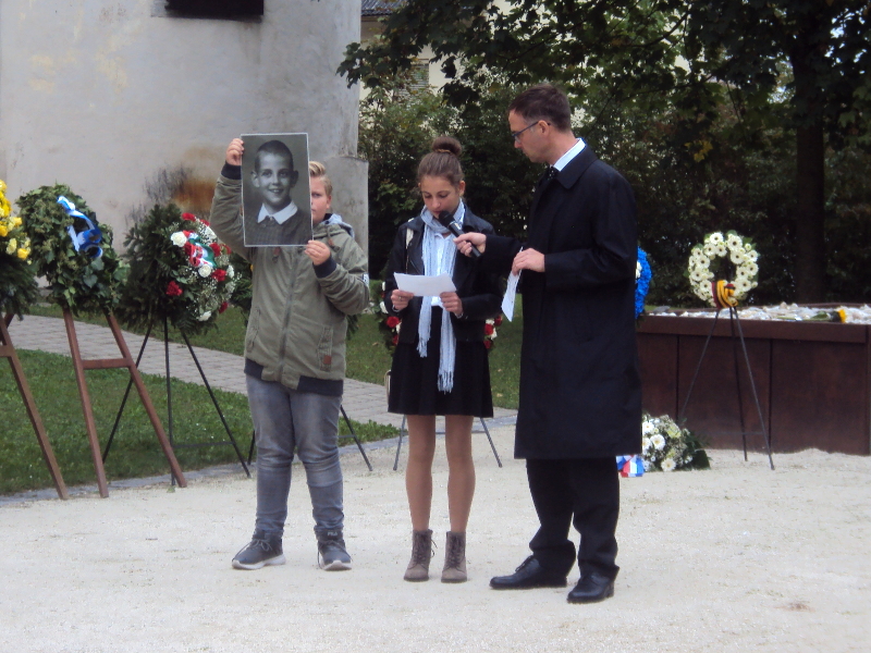 Po oficjalnych wystąpieniach i prezentacji projektu edukacyjnego, realizowanego przez uczniów okolicznych szkół, którzy wzięli udział w stworzeniu głównego pomnika pod Zamkiem Hartheim, uroczystości przeniosły się w to miejsce. Najpierw odbyła się msza ekumeniczna, po której rozpoczęło się składanie wieńców i zniczy. W imieniu Rzeczypospolitej Polskiej wieniec złożył konsul generalny RP w Austrii Aleksander Korybut-Woroniecki. Wieniec i znicze w imieniu Instytutu Pamięci Narodowej złożyli dr Agnieszka Łukasz z Oddziałowego Biura Edukacji Narodowej IPN w Poznaniu i Przemysław Jurkiewicz z Muzeum Martyrologii Wielkopolan – Fort VII. Natomiast w imieniu rodzin polskich ofiar wieniec i znicze złożyli Elżbieta Rybarska i Urszula Kowalska wraz z nauczycielem Tomaszem Woźniakiem ze Szkoły Podstawowej nr 58 im. Jerzego Kukuczki w Poznaniu.