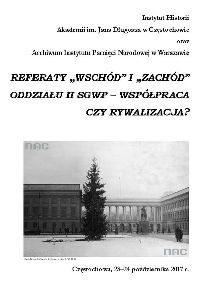 Instytut Historii Akademii im. Jana Długosza w Częstochowie i Archiwum Instytutu Pamięci Narodowej zapraszają na konferencję naukową poświęconą historii polskiego wywiadu wojskowego II RP zatytułowaną „Referaty «Wschód» i «Zachód» Oddziału II Sztabu Generalnego/Głównego Wojska Polskiego – współpraca czy rywalizacja?”. Konferencja odbędzie się w Apart Hotelu w Częstochowie ul. Św. Rocha 224.