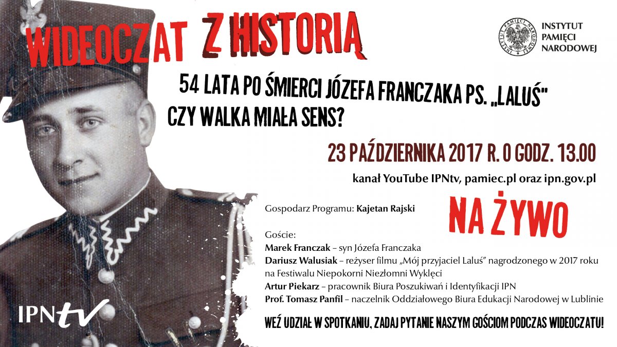23 października wystartował nowy projekt Wydziału Notacji i Opracowań Multimedialnych IPN – „Wideoczat z historią”. Będzie to comiesięczny program historyczno-publicystyczny emitowany na żywo, transmitowany na YouTube.